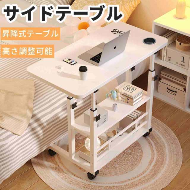 サイドテーブル 昇降式サイドテーブル 移動式テーブル 介護用ベッドテーブル ノートパソコン用 仕事用 ベッドサイドテーブル 高さ調節 組立簡単 おしゃれ