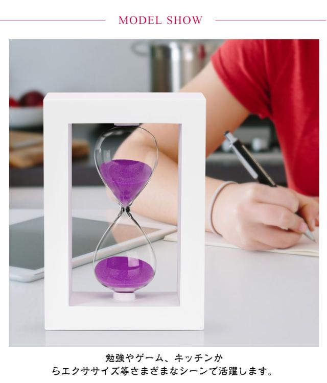 | ナチュラルな木枠付きの砂時計。【45分/60分】 温かみのある木のフレームはインテリアとしてもオシャレな見た目です。 書斎の本棚や窓際のスペース、キッチンのカウンターなど、オブジェとして飾るだけでも素敵な存在感です。 流れ落ちる砂にゆったりとした時間を感じます。 音もなく集中したい時に大活躍! 勉強やゲーム、キッチンからエクササイズ等さまざまなシーンで活躍します。 | |