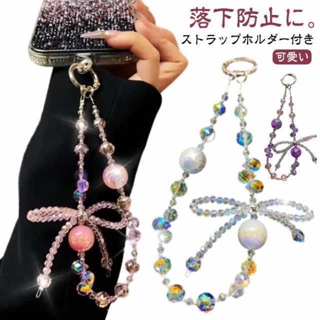 スマホストラップ ストラップホルダー付き キラキラ スマホ ハンドストラップ 手首 携帯ストラップ おしゃれ かわいい リボン 可愛い レディース 女子 短い 落下防止 ショートストラップ リストストラップ アウトドア キーホルダー