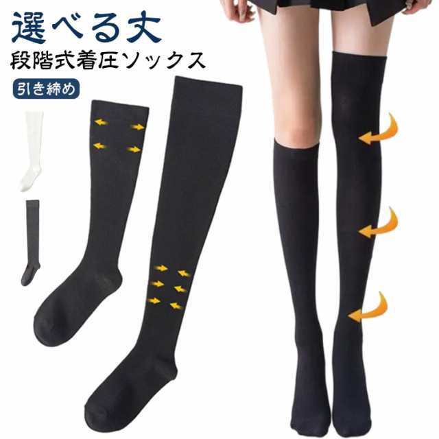 段階着圧 足の疲れ むくみ 着圧ストッキング エコノミー症候群 ハイソックス 黒 綿混 強圧 引き締め 着圧ソックス デスクワーク 下肢静脈瘤 美脚ソックス すっきり 白 グレー 靴下 弾性ソックス 滑り ムレ 防止 段階着圧 仕事 通学