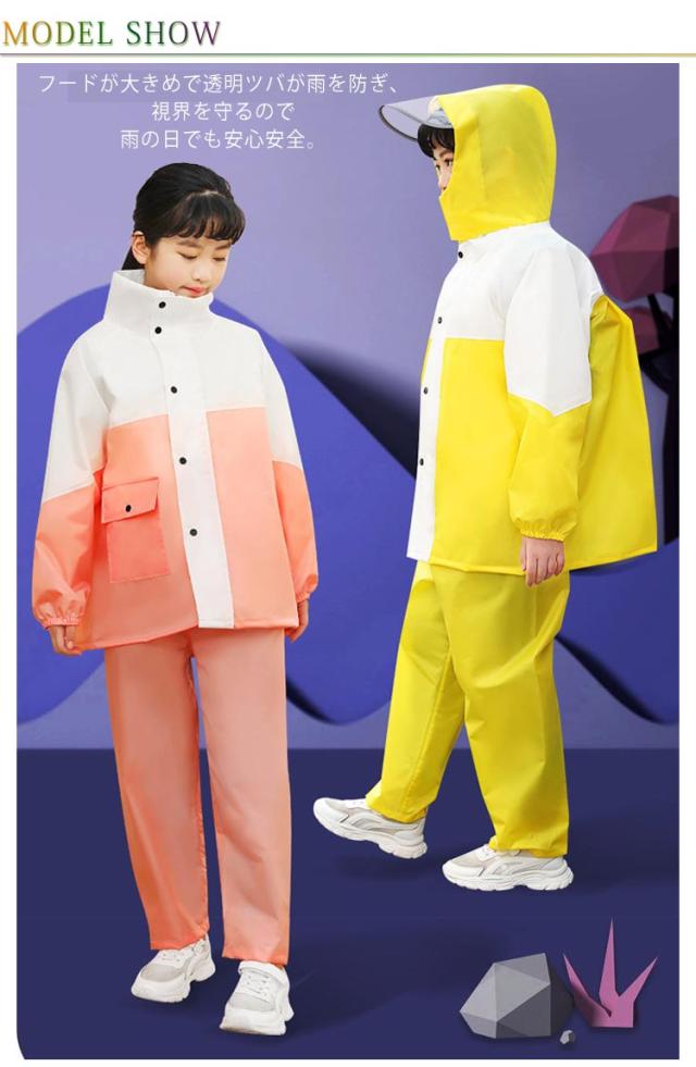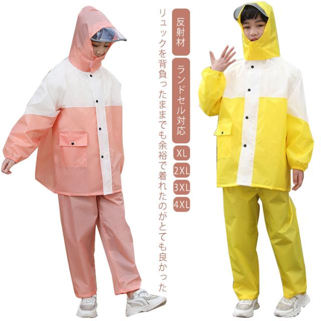 レインコート 反射材 通学 セパレート 子供用 ランドセル対応 キッズ レインスーツ リュック対応 リュック レインウェア 雨具 自転車 小学生 女の子 男の子 レイン コート 上下セット アウトドア おしゃれ リュック対応 袋付 XL 2XL 3XL 子供用