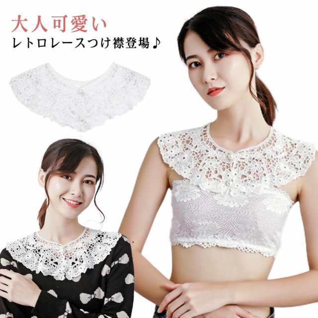 付け襟 レトロレース レディース つけえり ブラウス付け襟 フリル 丸襟 重ね着風 フレア ブラウス襟 レイヤード つけ襟 立ち襟 シフォン 秋 冬 春 夏 通勤 シンプル おしゃれ 白 ホワイト 上品 可愛い ガーリー 花柄 パール