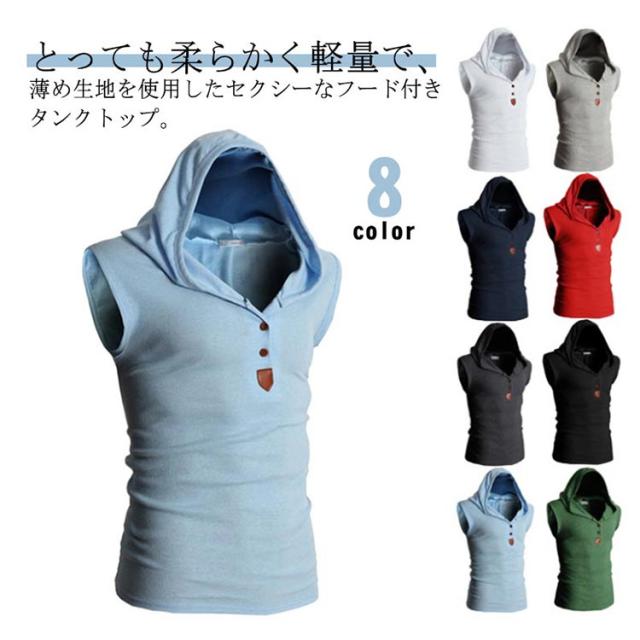 送料無料フード付ベスト 袖なし ノースリーブパーカ ノースリーブ メンズ パーカー スポーツウエア 部屋着 ランニングシャツ タンクトップ トレーニングウェア ジムウェア ストリート系 フード付き