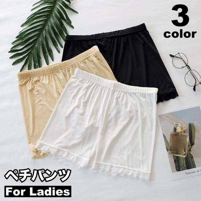 ペチパンツ タップパンツ レディース 女性用 下着 インナーパンツ 3分丈 裾レース 透け防止 チラ見え防止 無地 シンプル 肌