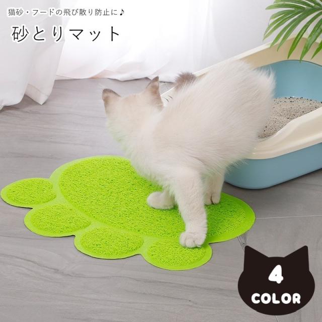 砂とりマット ペット用トイレマット 猫用トイレマット ネコ 小動物用 ペット用品 ペットグッズ 防滑 滑り止め 肉球型 グリーン