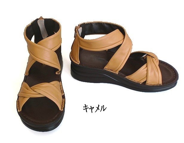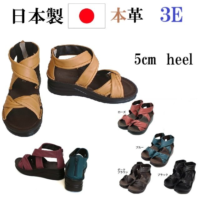 日本製 本革 本革後ろファスナー ブーサン ブーツサンダル 幅広 3e 外反母趾 コンフォートサンダル 厚底 ウェッジヒール 革 グラディエーター サマーブーツ クロス カジュアル 履きやすい 歩きやすい おしゃれ