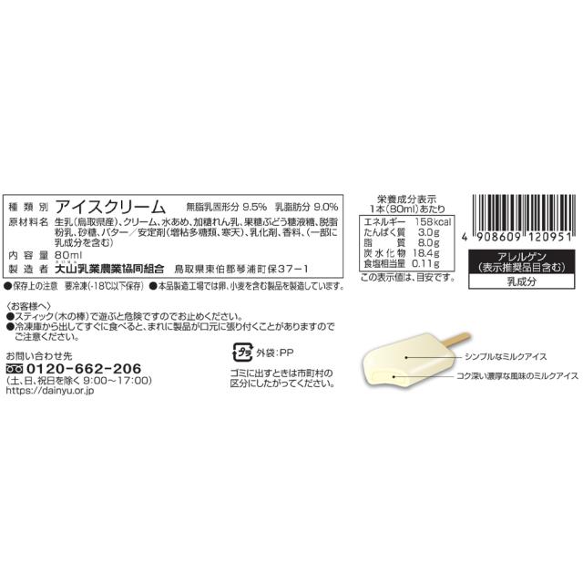 鳥取県産生乳を使用した2層仕立てのアイスバー!【鳥取県産生乳使用】鳥取県産生乳を使用し、「乳本来のおいしさ」にこだわって作ったアイスバーです。濃厚でなめらかなミルクアイスを、シンプルなミルクアイスで包み、2層仕立てにしております。