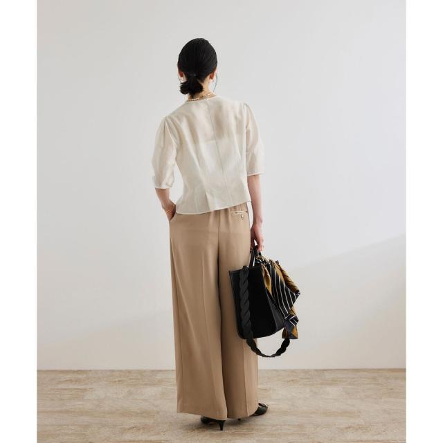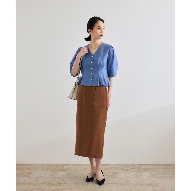 1枚で決まるデザイン性のあるブラウスで、今年はパンツ合わせが気分。タイトスカートとも相性が良いので、ロペで定番人気のポケット付きタイトスカート知りずとも好相性!また、ジャケットと合わせてもバランスよく、華やかさもあるので、お仕事着としてもおすすめの1着です。