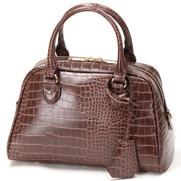 クロコの型押しを施した合皮を使った2wayボストンバッグ。