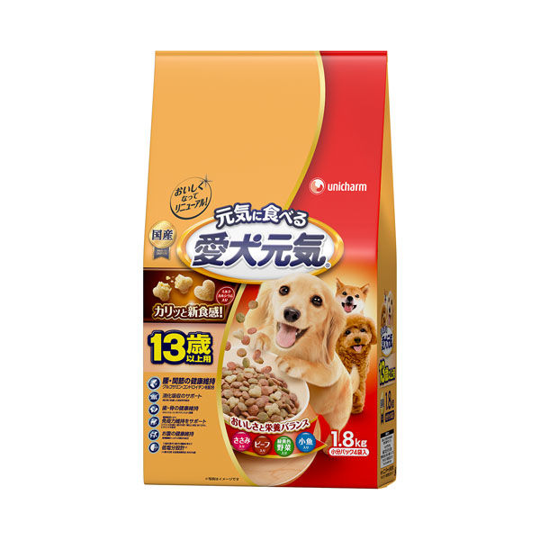 ユニ・チャーム 愛犬元気 13歳以上用 ささみ・ビーフ・緑黄色野菜・小魚入り 1.8kg