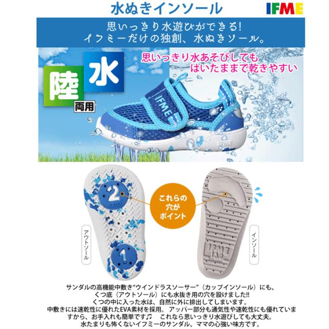 イフミー キッズ サマーシューズ 3E相当 水陸両用 IFME 両ベルトウォーターシューズ 15-19cm キッズ靴 子供靴 ジュニア スニーカー 水抜きソール 夏靴 脱ぎ履き簡単 履きやすい 子ども 男の子 女の子 子ども 幼児 園児 プレゼント ギフト 安心・安全/20-5318