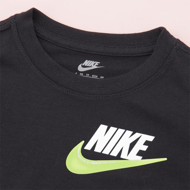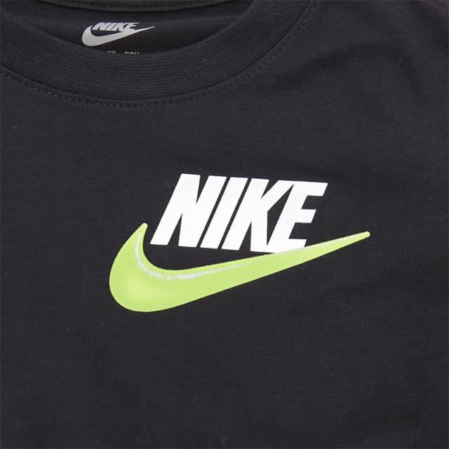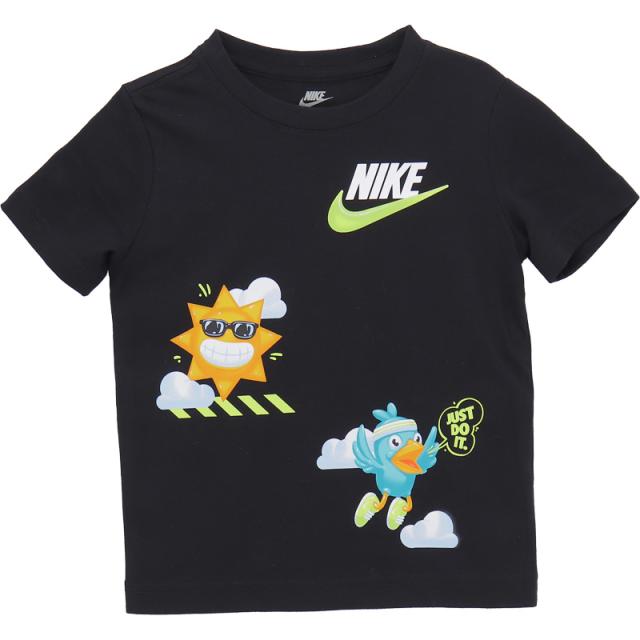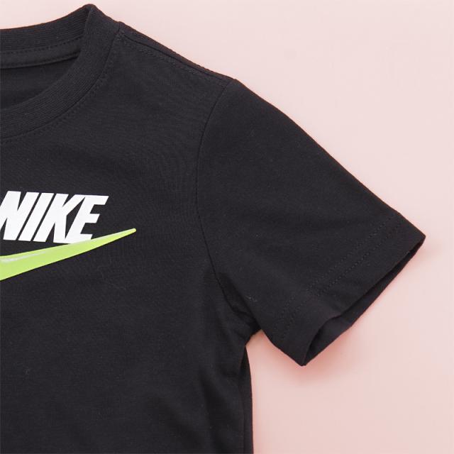 ナイキ キッズ 半袖Tシャツ ショートパンツ 上下 98-122cm 子供服 NIKE JUST BELIEVE SHORT SET セットアップ スポーツウェア 子ども プリントTシャツ ハーフパンツ 2点セット ブラック 夏服 男の子 女の子 幼児 低学年 ブランド アパレル/86M971-E0Z