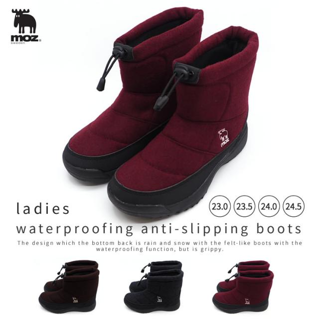 【 防水 】【 防滑 】 moz sweden 防水防滑ブーツ 4cm4時間の防水機能 MZ-458 ( レディース ブーツ 疲れない 冬 レジャー スノーブーツ ウインターブーツ 防寒 婦人 ブラック ブラウン ワイン 靴 )