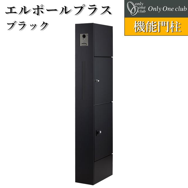 オンリーワン 機能門柱 宅配ボックス ポスト エルポールプラス KS1-C042 ブラック 錠付き ※インターホンは付属していません