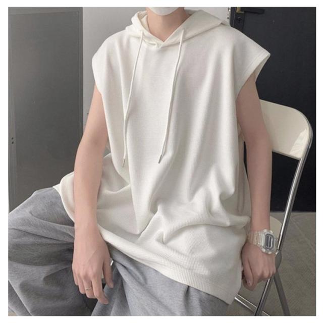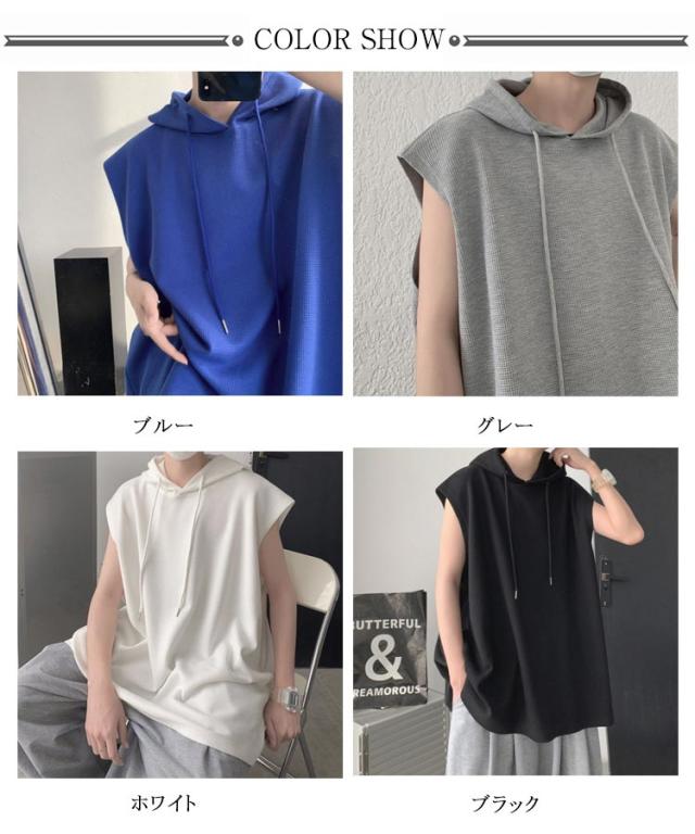 袖なし Tシャツ タンクトップ ジレ フード付き 春夏 トップス 夏 ベスト ゆったり メンズ 薄手 フード付きタンクトップ 夏ベスト 重ね着 プルオーバーベスト 無地 薄手 パーカーベスト 個性的 カジュアル スポーツウエア 送料無料