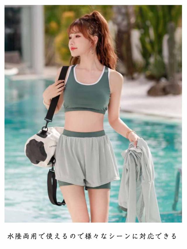 | 長袖ラッシュガードパーカー、タンキニ、ハーフパンツの水着セパレート3点セット。 タンキニ、ハーフパンツのセットなので肌の露出が苦手な方でも挑戦しやすいデザインです。 日焼け対策も体型カバーもでき、機能性とデザイン性を兼ね備えたラッシュガード。 水陸両用で使えるので様々なシーンに対応できる ショートパンツはハイウエストタイプ、スタイルアップを期待でき、こなれた雰囲気を醸し出す シンプルながらも洗練されたデザインで、リゾート、温泉、プール、海、川などのレジャーまで幅広くご使用いただけます。 取り外し可能な胸パット付き. | |