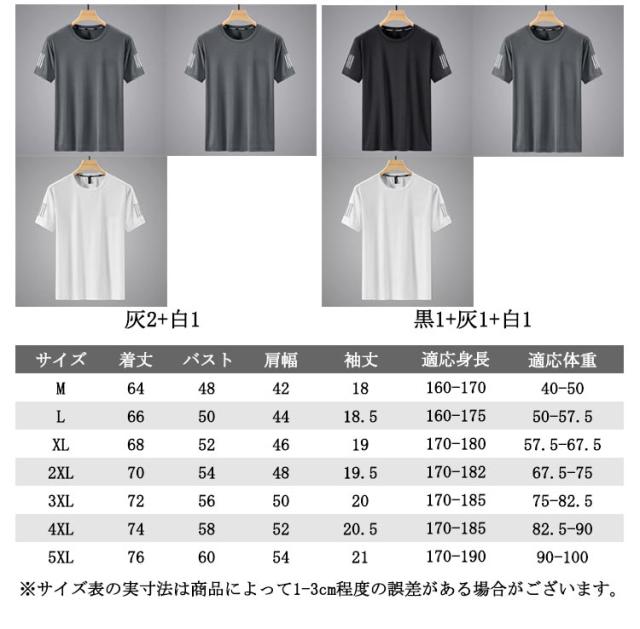 接触冷感 半袖 tシャツ メンズ 涼しい tシャツ ストレッチ 接触冷感 メンズ tシャツ セット 3枚セット 大きいサイズ 接触冷感 吸汗速乾 ドライ 半袖 Tシャツ L XL 2XL 3XL 4XL 5XL メンズ オールシーズン 送料無料