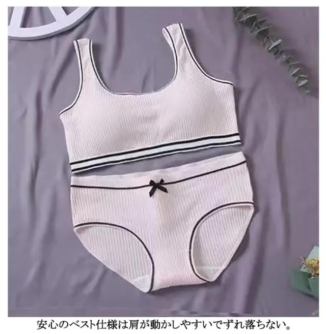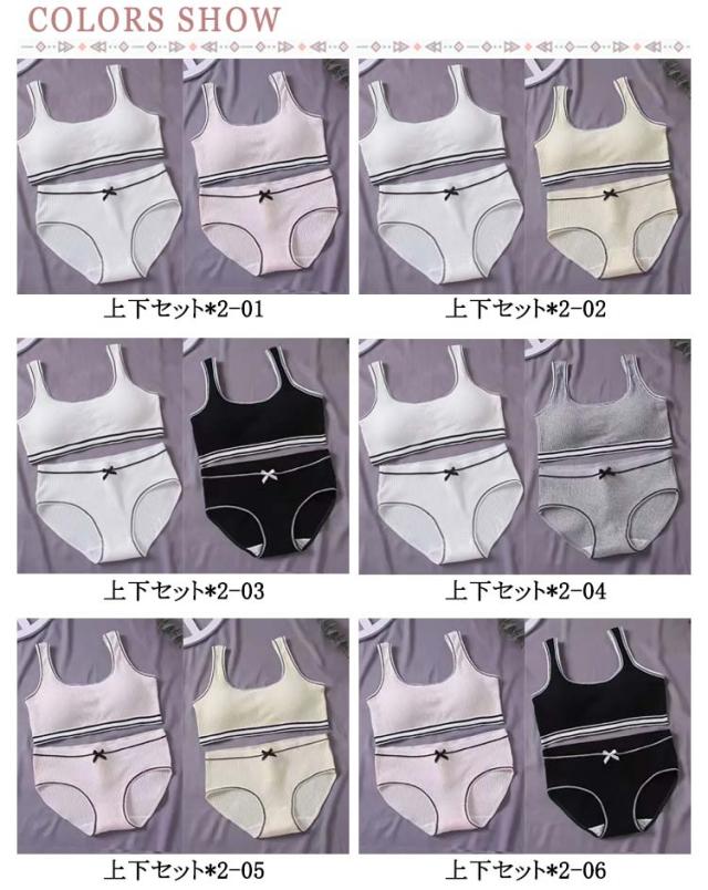 上下セット*2!お得なブラジャー&パンツ上下セット 高校生 ショーツセット スポーツブラ ジュニアブラジャー シンプル 上下セット 学生 リブ ノンワイヤーブラ 英字ロゴ ジュニア向け フィットネス ヨガ 運動 トレーニング ベストタイプ 子供 中学生 小学生 ショーツ