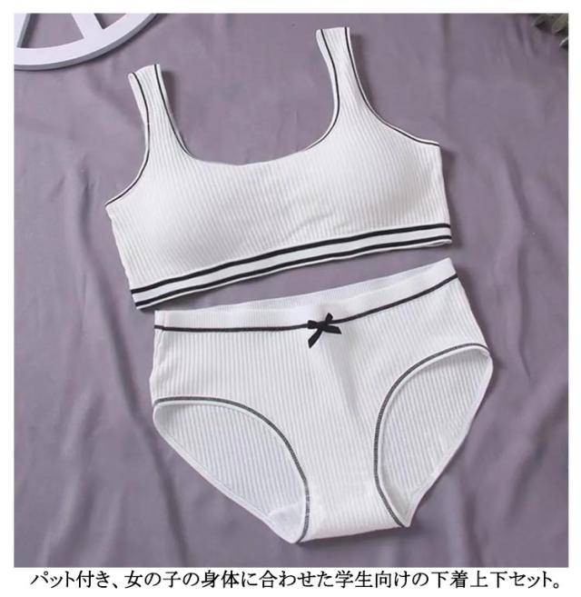 | 上下セット*2!お得なブラジャー&パンツ上下セット、成長するお子様を優しく守ります。 パット付き、女の子の身体に合わせた学生向けの下着上下セット 柔らかく通気性抜群の素材を採用して汗をかいても吸収して乾きやすい、蒸れずにさらっとした快適な着心地が続きます。 安心のベスト仕様は肩が動かしやすいでずれ落ちない。 取り外し可能のパッド付き、いつでも清潔にお使いいただけます。 シンプルなデザインでスッキリしたシルエットを演出してトップスに響かないから嬉しい。 | |