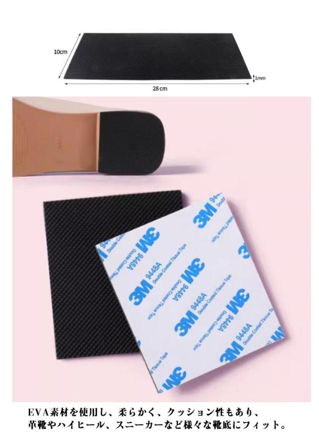 | 革靴、ハイヒール、カジュアルシューズなどに使える滑り止めシート。5枚セット 靴底パッドは耐摩耗性に優れて、損傷しにくく、長持ちします。 剥離紙を剥がして直接貼るだけで、しっかりと固定することができます。 柔らかな素材を使用して、靴の騒音を減らし、靴底を保護します EVA素材を使用し、柔らかく、クッション性もあり、革靴やハイヒール、スニーカーなど様々な靴底にフィット。 お好みのサイズにハサミでカットして貼り付けるだけ。厚さ3mmなので、ソール全体の修理、もしくは補修箇所のみの部分補修、かかとにもつま先にもお使いいただけます。 靴底だけでなく、テーブルや椅子、ソファーなどの滑り止めパッドとしてもお使いいただけます。 | |