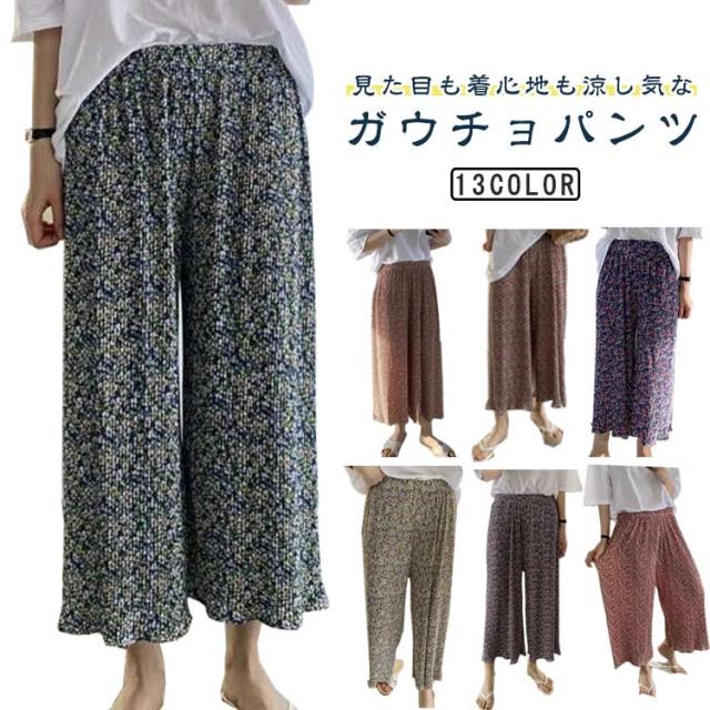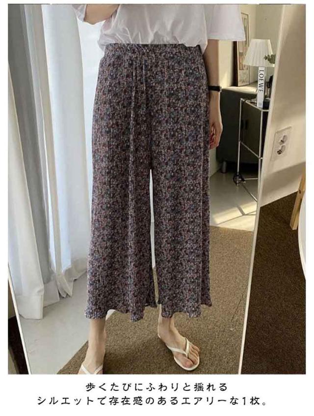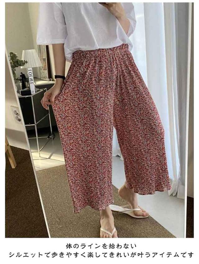 シフォン ワイドパンツ プリーツ ウェストゴム ロング丈 パンツ ガウチョパンツ ボトムス プリーツパンツ 春 夏 レディ—ス ひんやり 速乾 軽量 涼しい ズボン ジャージ ゆったり 伸縮 ラックスワイドパンツ イージーパンツ きれいめ 冷感 ルームウェア 送料無料