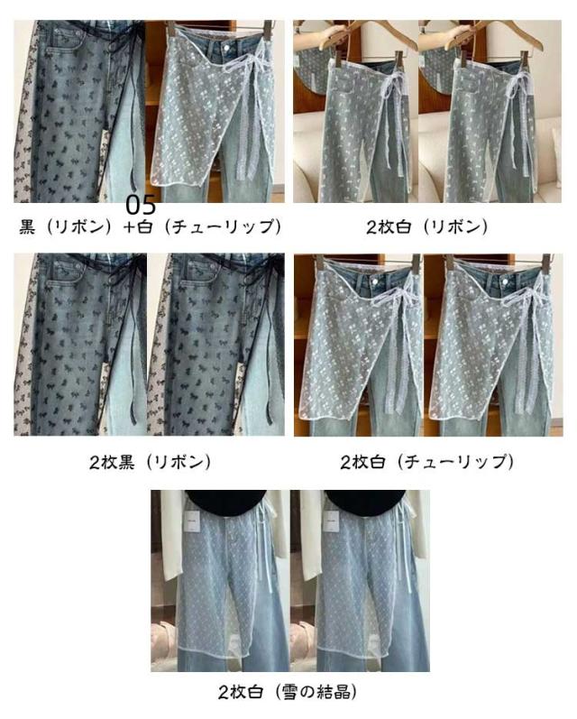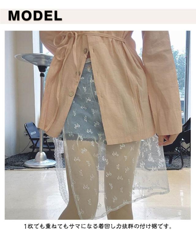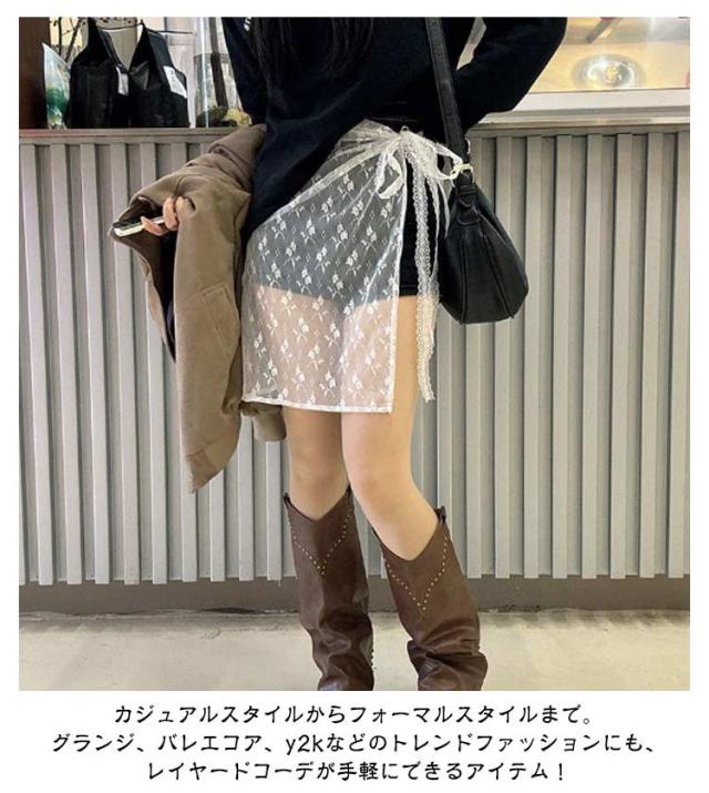 2枚セット 付け裾 レース 花柄 レイヤード 重ね着風 つけ裾 スカート ラップスカート レディース ペチコート チュール 巻きスカート 膝丈 体型カバー ズボンの上 重ね着 レース 花柄 シースルー 刺繍 透け感 シアー きれいめ バレエコア 韓国風 y2k 春 夏 秋 冬