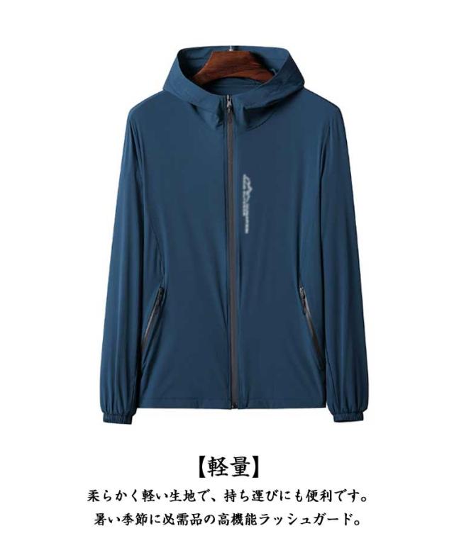 ラッシュガード メンズ 長袖 UVカット パーカー 水着 軽量 ラッシュパーカー ジップアップ 接触冷感 アウター 大きいサイズ フード付き 釣り 日焼け対策 紫外線カット 速乾性 通気性 アウトドア 送料無料
