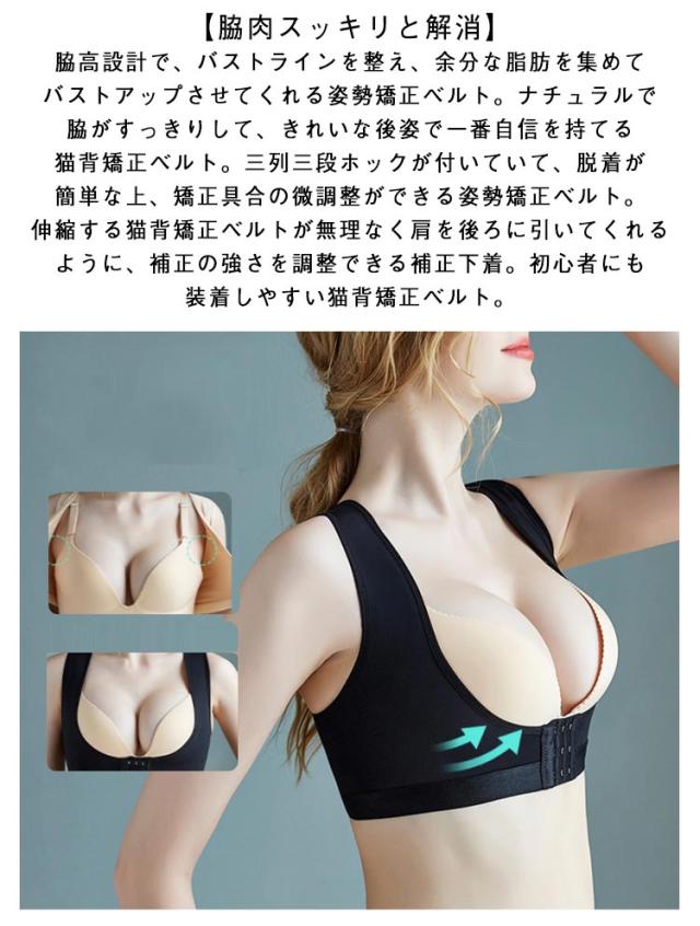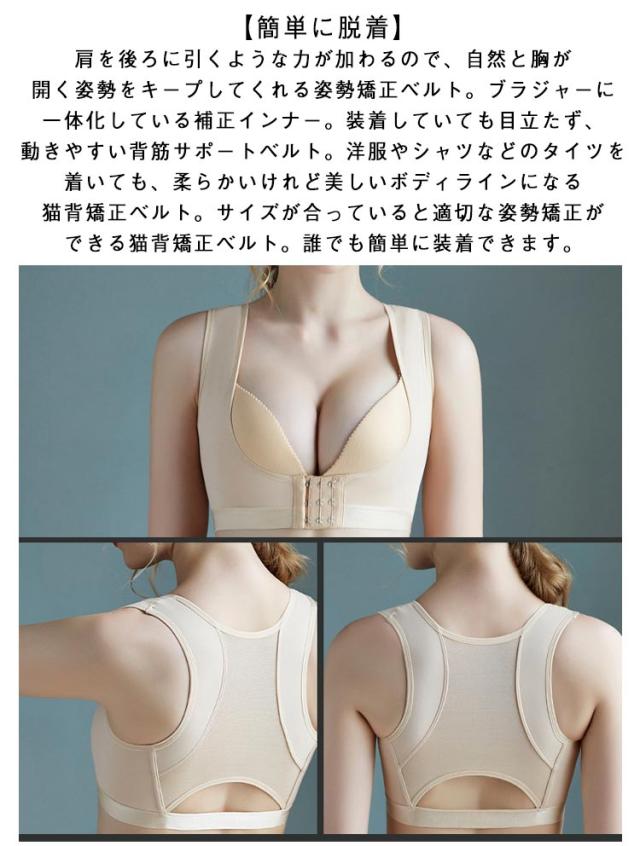 | バックメッシュで通気性抜群の猫背矯正ベルト。目立たないデザインで夏場で大活躍!【女性用】 【強力加圧】装着するだけで美しい姿勢に導いてくれる猫背矯正ベルト。猫背矯正ベルトは正しい姿勢を意識させて、自然と背筋が伸ばされます。窮屈感もなく肩への負担が減少させてくれる猫背矯正ベルト。背中の贅肉をカバーして、後姿がすっきりとした演出可能な姿勢矯正ベルト。バストの肉全体が上に上がって、谷間をしっかりメイクできる補正下着。 【脇肉スッキリと解消】脇高設計で、バストラインを整え、余分な脂肪を集めてバストアップさせてくれる姿勢矯正ベルト。ナチュラルで脇がすっきりして、きれいな後姿で一番自信を持てる猫背矯正ベルト。三列三段ホックが付いていて、脱着が簡単な上、矯正具合の微調整ができる姿勢矯正ベルト。伸縮する猫背矯正ベルトが無理なく肩を後ろに引いてくれるように、補正の強さを調整できる補正下着。初心者にも装着しやすい猫背矯正ベルト。 【美しい姿勢へ】柔らかい素材が使われていて、ストレスフリー長時間着用できる猫背矯正ベルト。肩をサポート猫背矯正ベルトだけでなく、脇肉をしっかりとバストに集めて寄せることができます。胸周りの肉をしっかりホールドする安定感があり、同時に背筋が伸びて姿勢を良くすることができる猫背矯正ベルト。ゆったりとした着け心地で、お胸を下から支えて持ち上げてくれる姿勢矯正ベルト。 【ソフトな着け心地】通気性に優れた素材なので長時間着用しても蒸れにくく快適な着け心地を楽しめる猫背矯正ベルト。ストレッチ性に優れた生地を採用しており、自由に伸びれ、装着も簡単な猫背矯正ベルト。伸縮性のあるゴムの力で肩を後ろに引き、背筋を伸ばしてくれる姿勢矯正ベルト。正しい姿勢の習慣化で理想的な美しい姿勢へ補正できる猫背矯正ベルト。自分に合ったフィット感で締めつけが調整できる補正下着。 【簡単に脱着】肩を後ろに引くような力が加わるので、自然と胸が開く姿勢をキープしてくれる姿勢矯正ベルト。ブラジャーに一体化している補正インナー。装着していても目立たず、動きやすい背筋サポートベルト。洋服やシャツなどのタイツを着いても、柔らかいけれど美しいボディラインになる猫背矯正ベルト。サイズが合っていると適切な姿勢矯正ができる猫背矯正ベルト。誰でも簡単に装着できます。 | |
