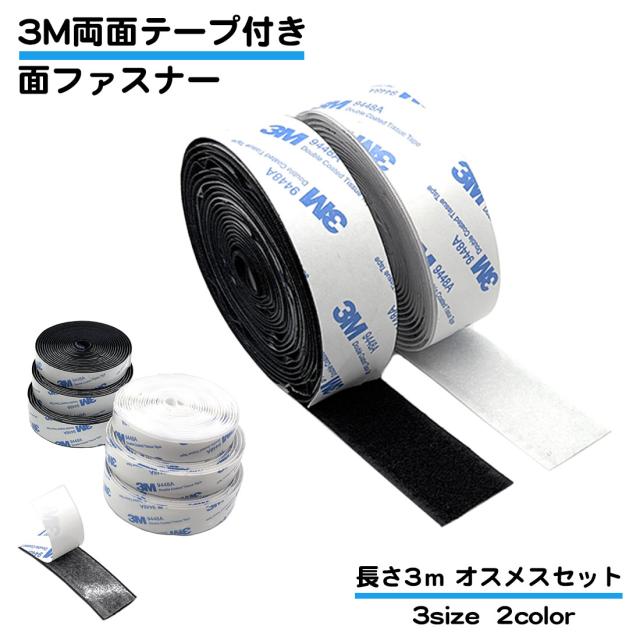 オスメスセット 面ファスナー マジックテープ 長さ3m 防水 3Mテープ 車 網戸 カーペット ベルクロ くっつく 脱着自由 強接着 DIY 整理 両面テープ 幅 25mm 20mm 16mm 送料無料