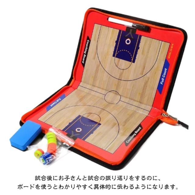 | マグネット、ペン、イレーサー付き バスケット 折りたたみ作戦盤 A4サイズ バスケットボールの作戦版 これはまさにバスケの必需品です!! お子さんには言葉だけで説明してもやっぱり伝わらない事が多いと感じていませんか? このボードを使って説明をすることで、見てもらいながら理解してもらえるようになります。 試合後にお子さんと試合の振り返りをするのに、ボードを使うとわかりやすく具体的に伝わるようになります。 マグネットのコマが付いてるのでその場でポジショニングの確認が可能! ペンとイレイサー付きなので書き込んだら何回でも消すことができます♪ コンパクトなサイズ感! 折りたたむとA4サイズに収まるのでバッグの中にサッと入れて練習や試合のときに持ち運びがカンタンに♪ | |