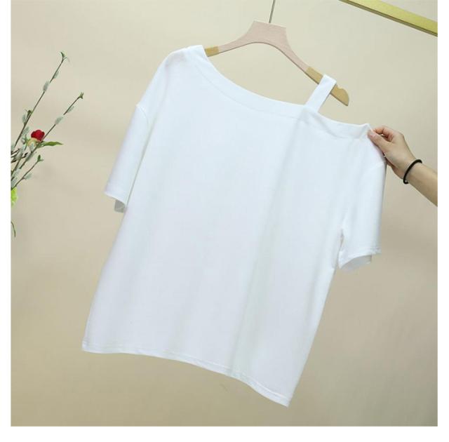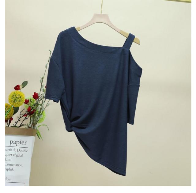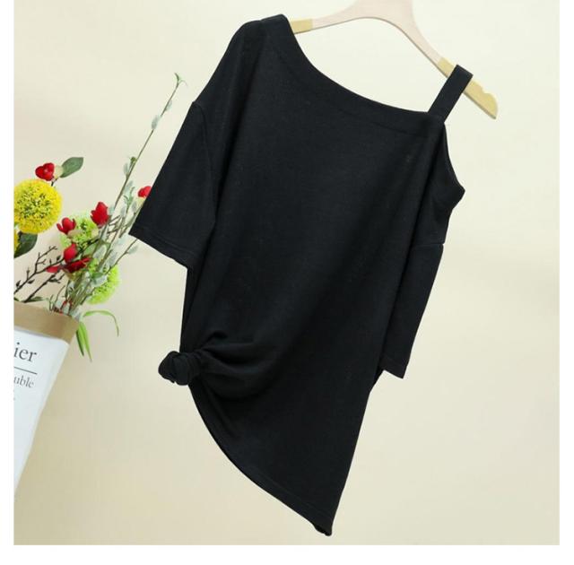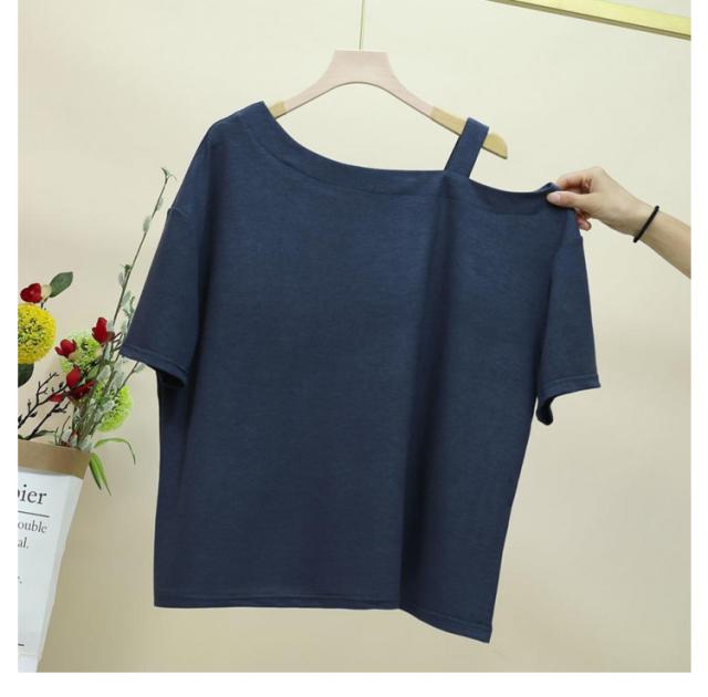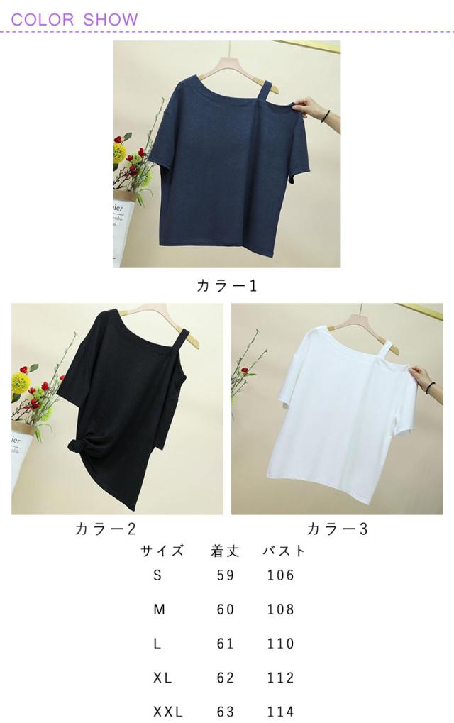 S 半袖 カットソー Tシャツ 肩だし 半袖Tシャツ トップス ワンショルダー シンプル Tシャツ ショート丈 レディース 肩出し シングル肩 ワンショルダー オフショルダー 大きいサイズ 春夏 送料無料 M L XL 2XL