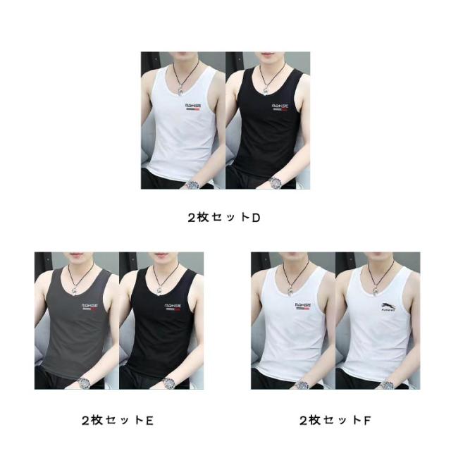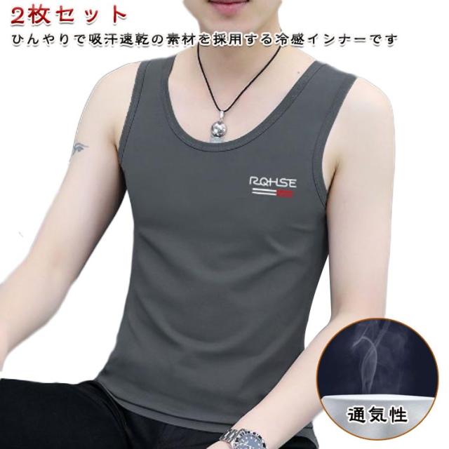 肌着 Uネック メンズ 涼しい 運動 ノースリーブ ひんやり 夏 Tシャツ 接触冷感 インナー 快適 無地 タンクトップ 冷感 抗菌 通気性 トレーニング 2枚セット トップス 冷感機能 吸水 男性用 男の子 夏 ランニング ジョギング 2枚セット ジム フィットネス スポーツ 部活