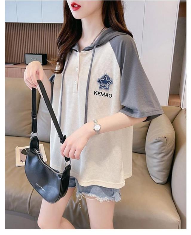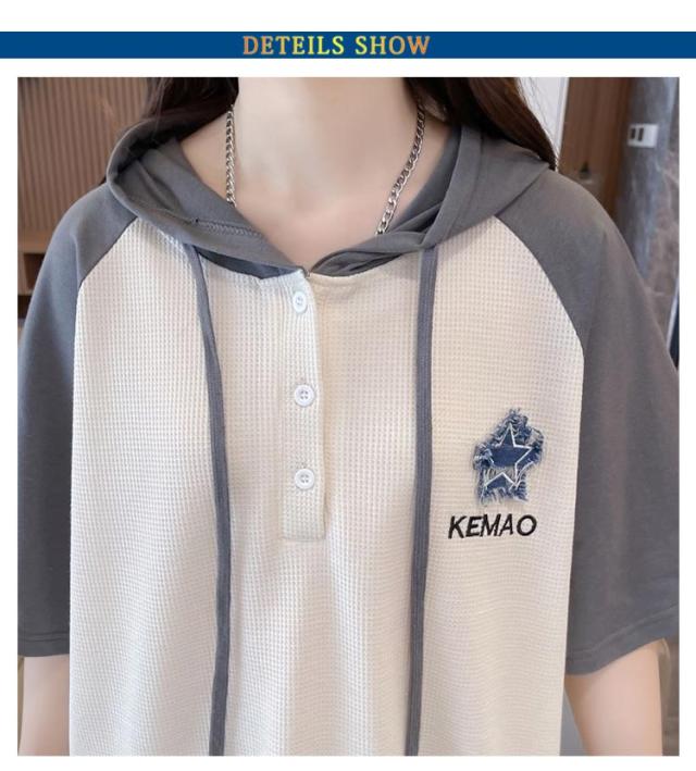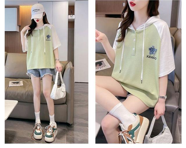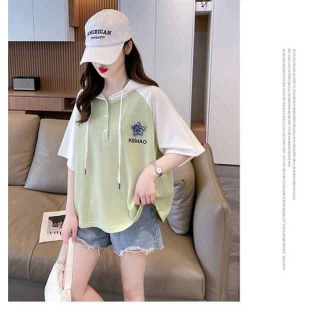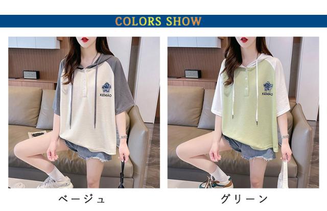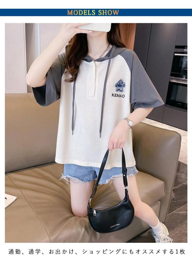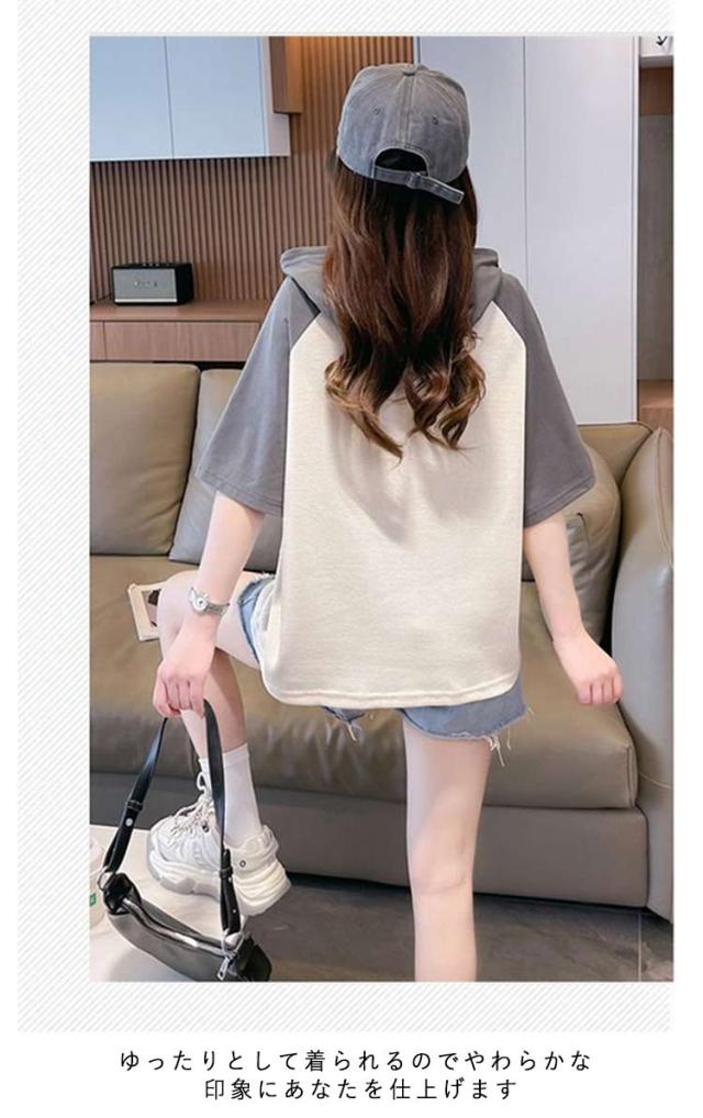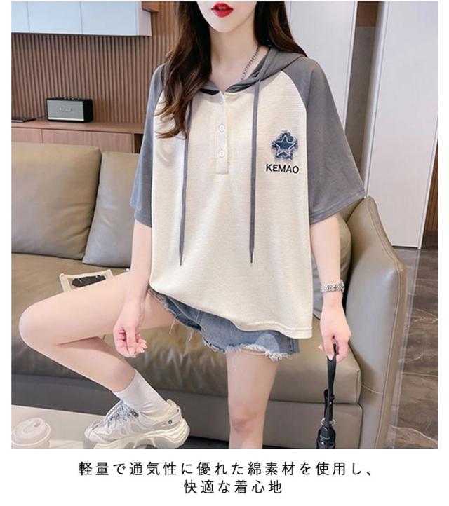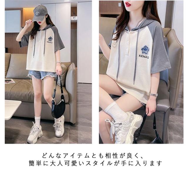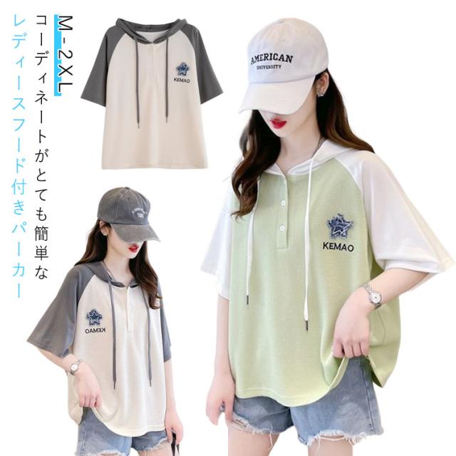 レディース フード付き 半袖パーカー Tシャツ トップス フード付き プルオーバーパーカー カットソー 半袖パーカー フードつきパーカー 半袖 ティーシャツ ビックtシャツ 大きいサイズ