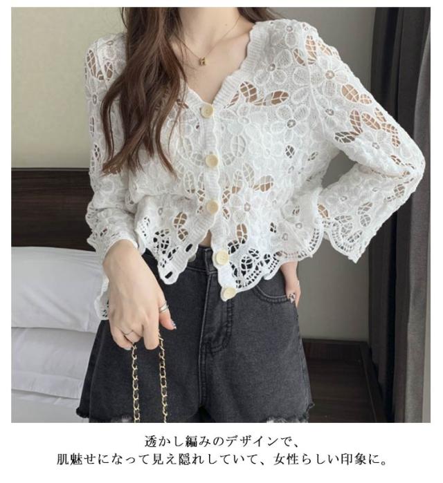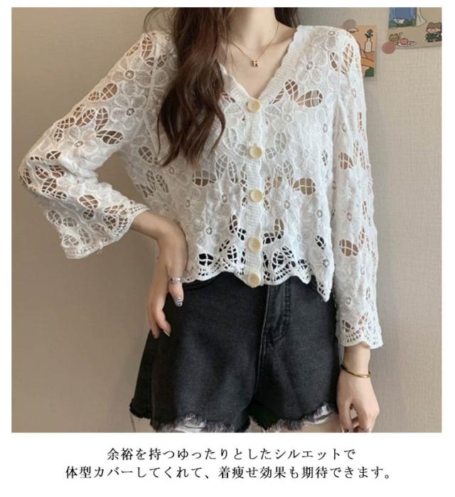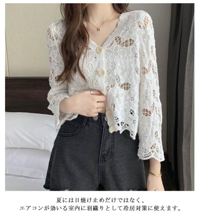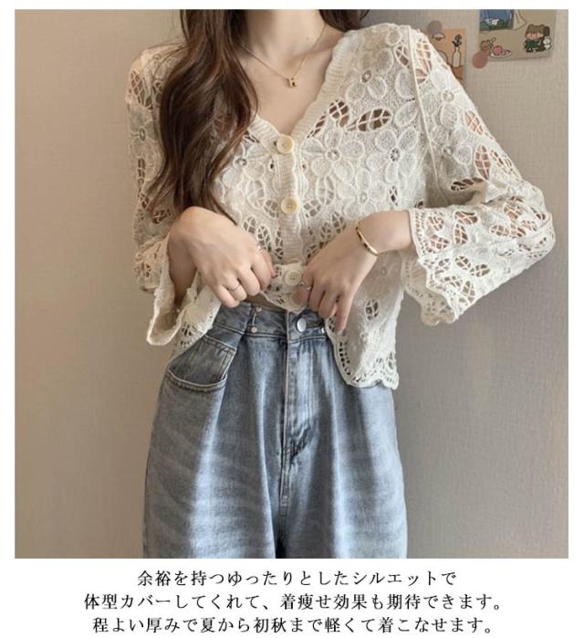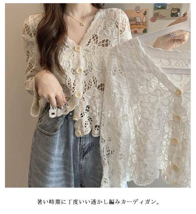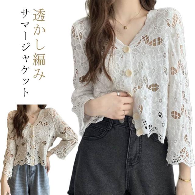 無地 アウター サマージャケット 夏 薄手 レディース 透かし編み トップス サマーカーディガン 春夏 サマーニット 透け 羽織り 10代 長袖 かぎ編み 透かし編みカーディガン 韓国ファッション 20代 30代 サマージャケット カジュアル