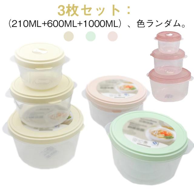 サラダ 鮮度保持 容器 プラスチック 蓋付き 丸型 おしゃれ 保存容器 保存容器 保存 長持ち フードコンテナ 作り置き おかず 冷凍 冷蔵 電子レンジ ラウンドコンテナ 3枚セット(210ml+600ml+1000ml) 色ランダム ギフト