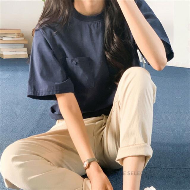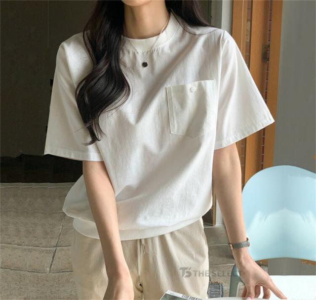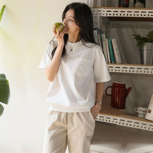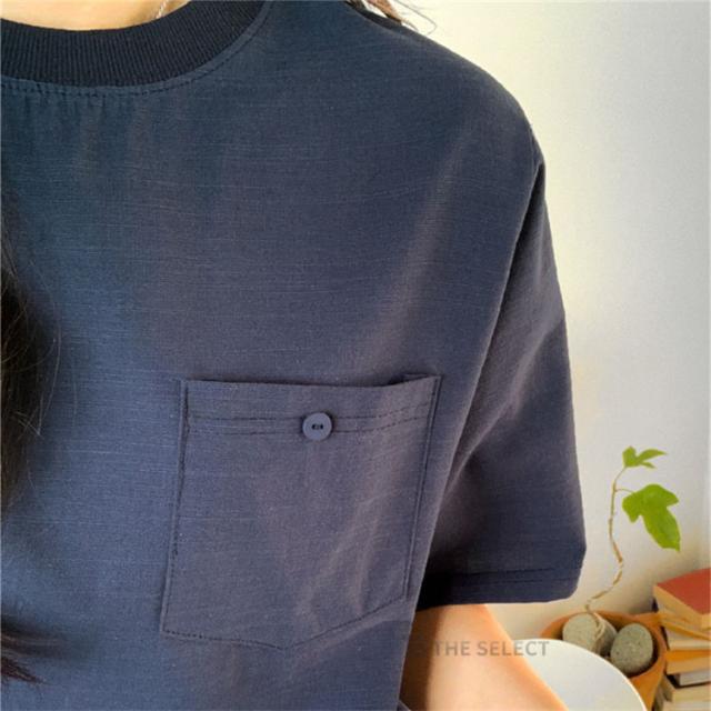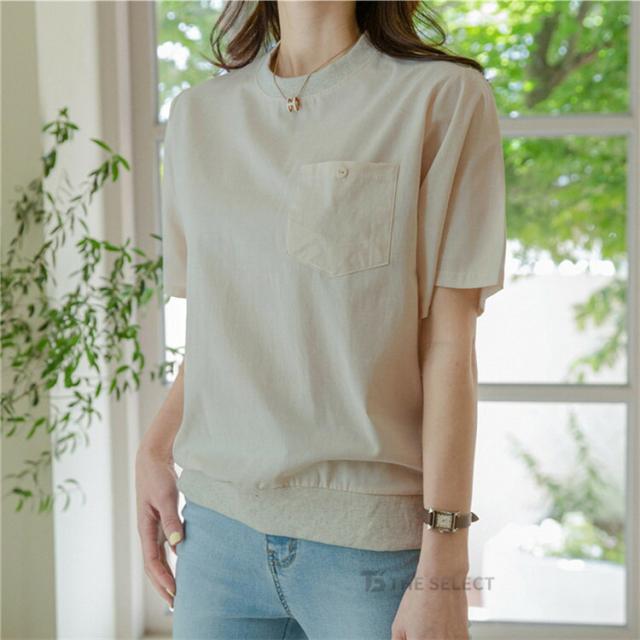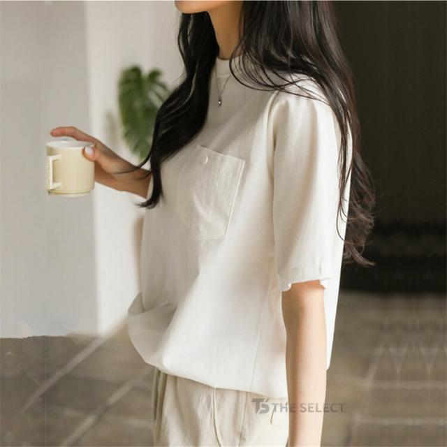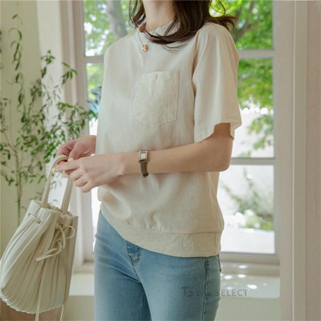 翌日配送 リネン Tシャツ レディース 半袖 トップス 綿麻 丸首 ティシャツ カットソー デザイン夏 クルーネック 無地 ポケット コットン ポケットtシャツ サマー おしゃれ 涼しい カジュアル 大人 胸ポケット付き