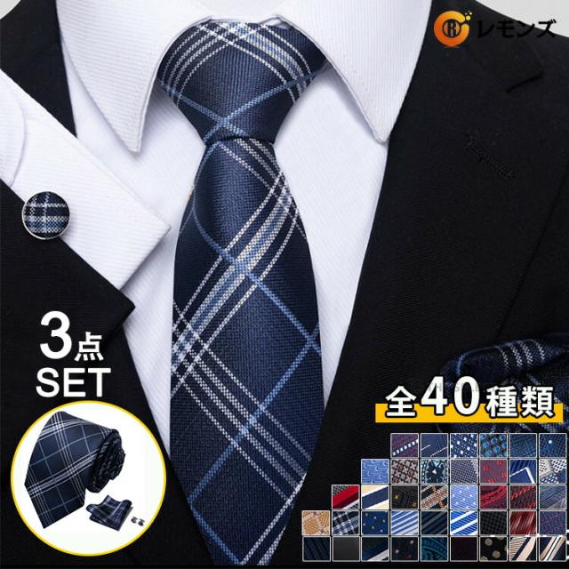 【送料無料】ネクタイ カフス ポケットチーフ 3点セット ビジネス用 3点 セット おしゃれ ギフト 40柄物 紳士用 レギュラー フォーマル 洗える 就活 結婚式 二次会 パーティ オシャレ ビジネス プレゼント ネクタイ3点セット 20代 30代 40代 50代