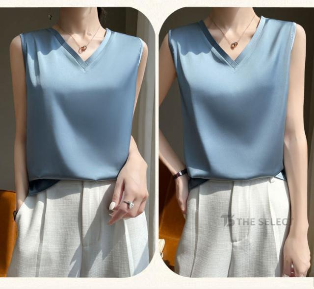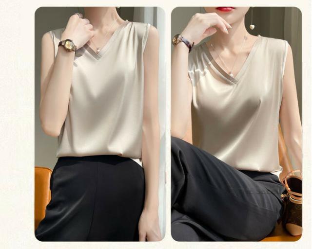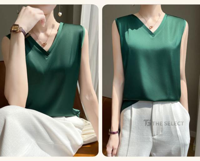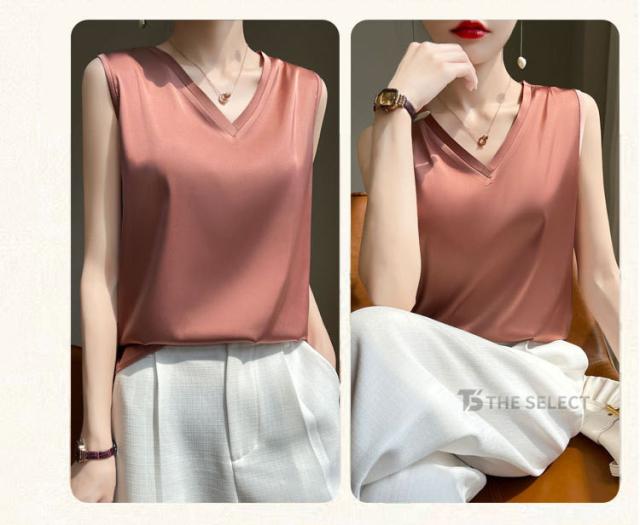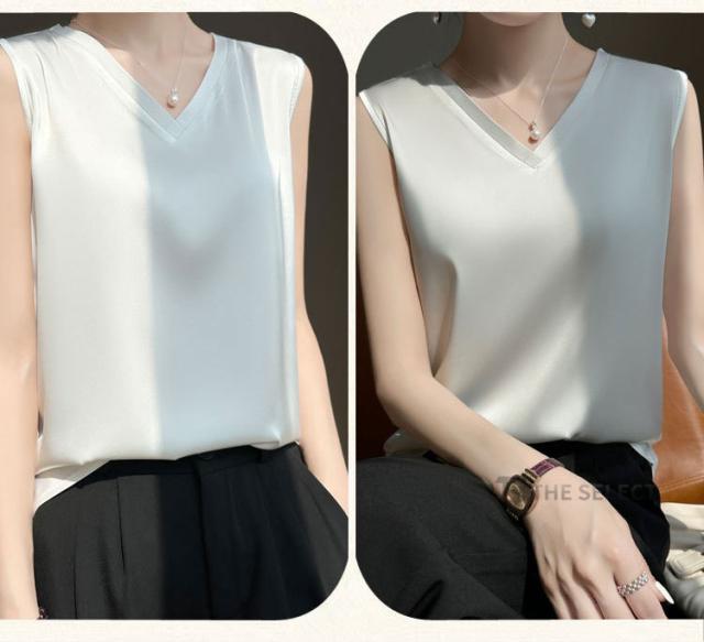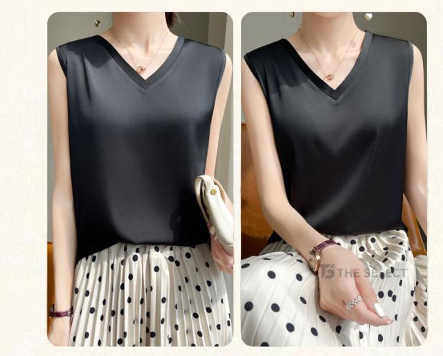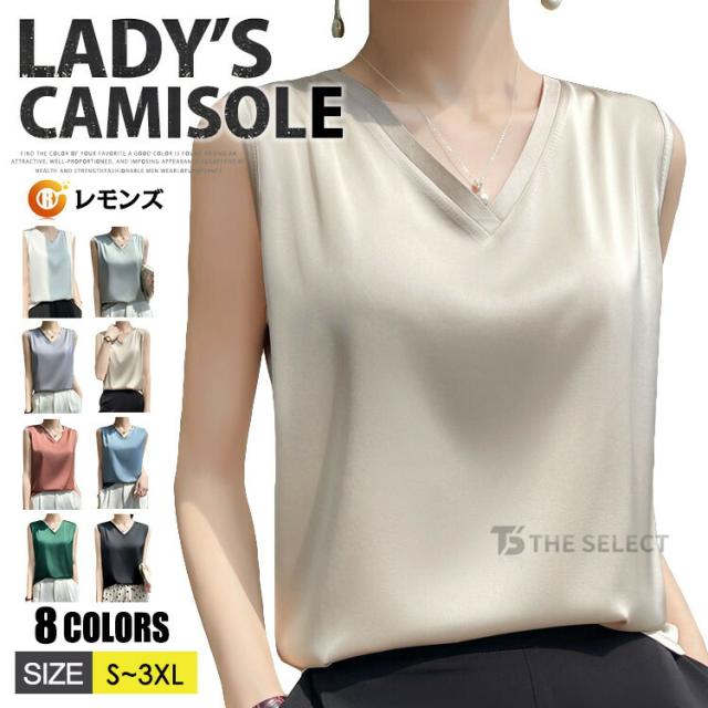 キャミソール サテン シルク タンクトップ レディース インナー ノースリーブ 下着 シルクサテン 大きいサイズ トップス ショート丈 ブラウス 袖なし アンダーウェア ゆる 肌着 重ね着 上品 部屋着 無地 透けない 光沢感 ツルツル 保温 吸湿 速乾 黒