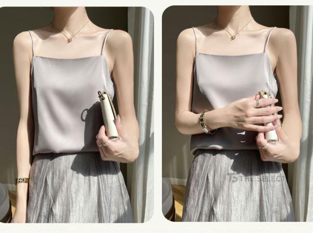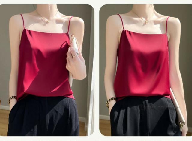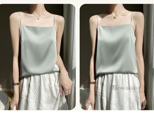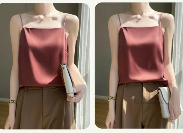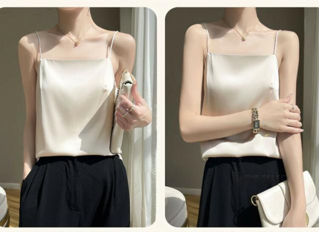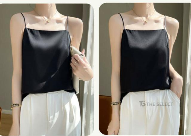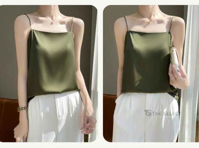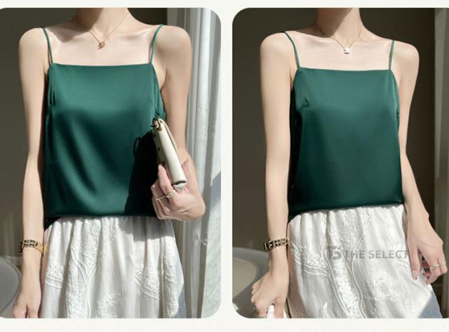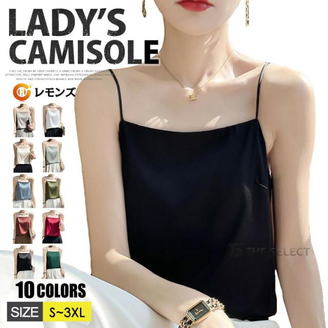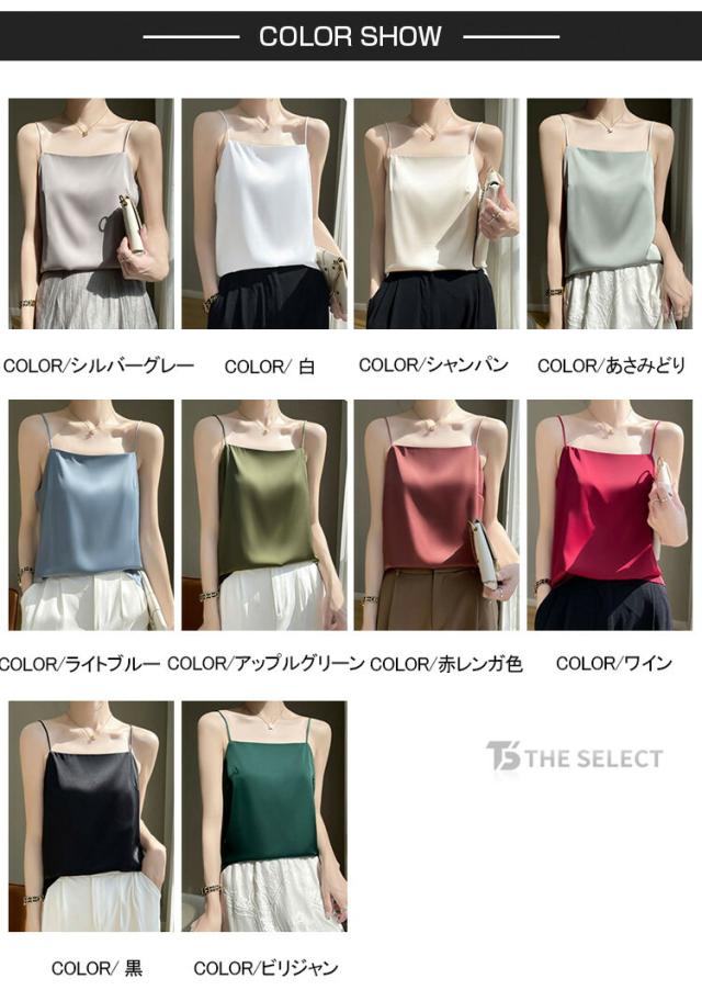 キャミソール タンクトップ レディース 肌着 インナー 下着 Vネック シンプル シルク スーツインナー トップス 春 夏 秋 大きいサイズ 袖なし 重ね着 部屋着 透けない 光沢感 ツルツル 吸湿 速乾