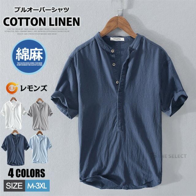 リネンシャツ バンドカラーシャツ メンズ 麻シャツ 綿麻 カプリシャツ プルオーバーシャツ 半袖シャツ カジュアルシャツ ボタンシャツ スキッパーシャツ スタンドカラーシャツ コットンリネン ナチュラル 無地 薄手 夏服 トップス 春夏 夏物 涼しい ちょいワル