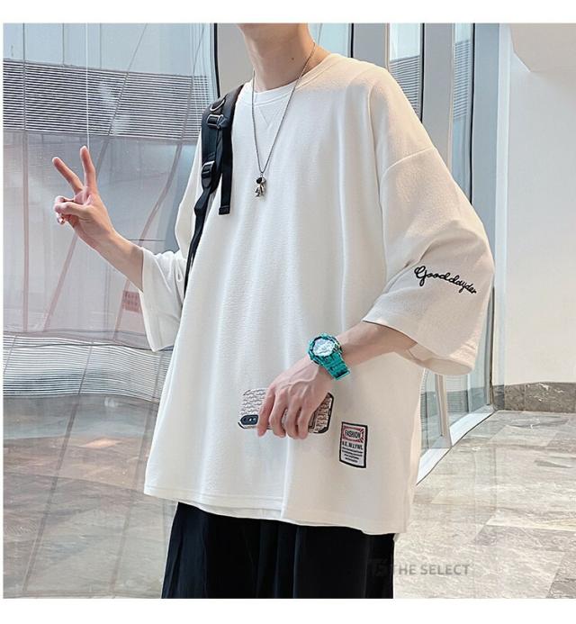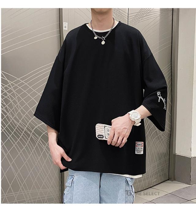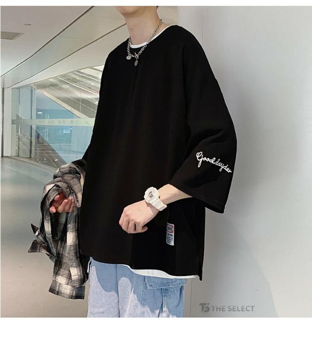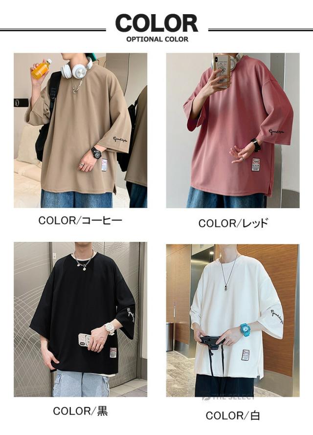 7分袖 Tシャツ 大きいサイズ メンズ 七分袖Tシャツ ゆったり おしゃれ オーバーサイズ tシャツ 七分丈tシャツ アメカジ 薄手 トップス ティーシャツ 涼しい クルーネック 無地 カジュアル トップス 夏服 韓国 ファッション ダンス 衣装