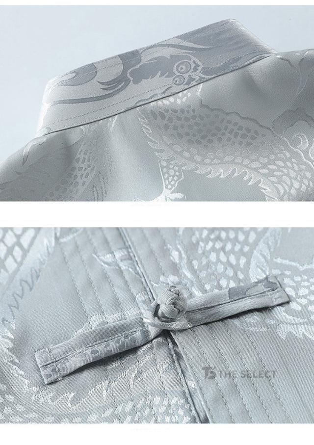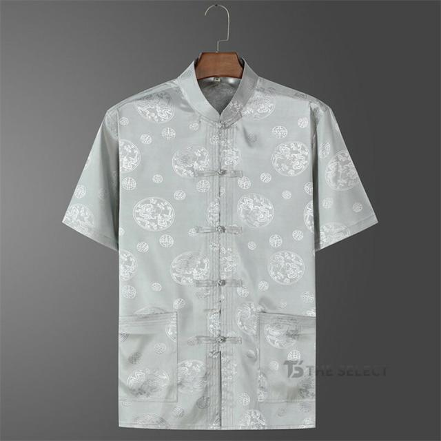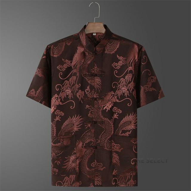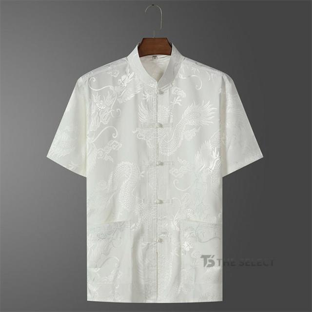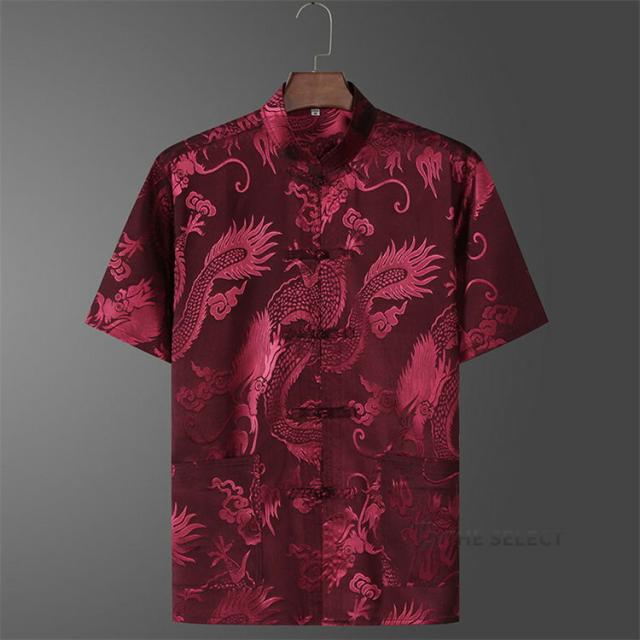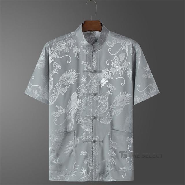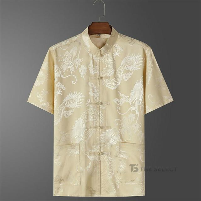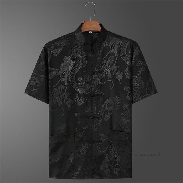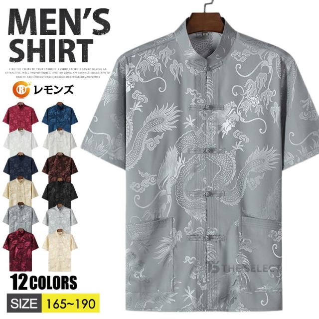 チャイナシャツ メンズ 接触冷感 カジュアルシャツ カンフーシャツ チャイナ服 半袖 スタンドカラー バンドカラー チャイナボダン チャイナ風 涼しい 龍柄 太極拳服 トップス 唐装 漢服 普段着 部屋着 中華風 夏服 おしゃれ 父の日
