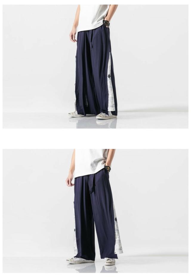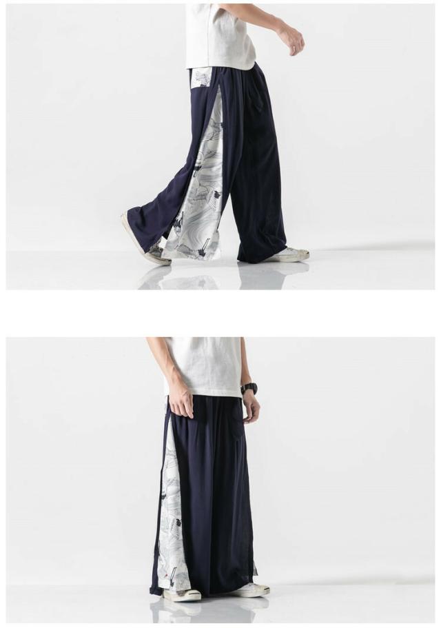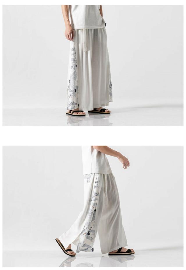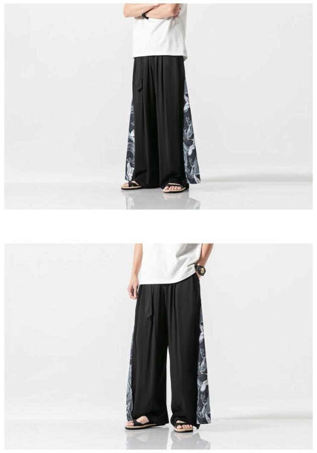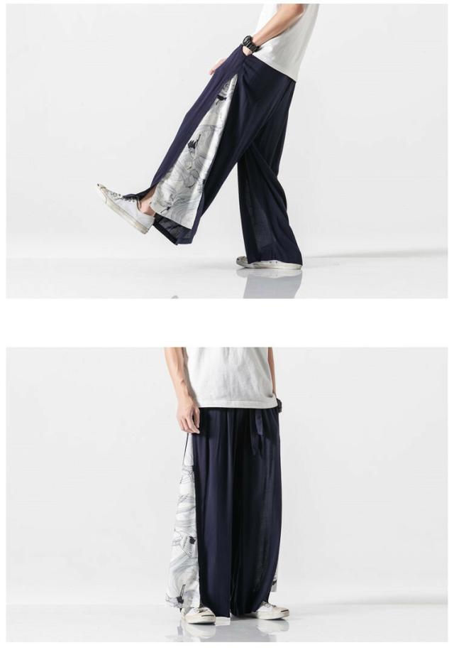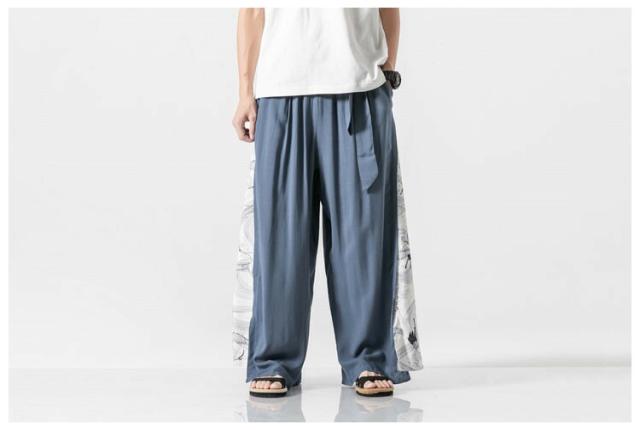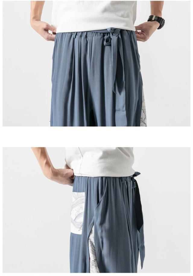 和風 ワイドパンツ メンズ 麻 リネンパンツ 中華風 サルエルパンツ
