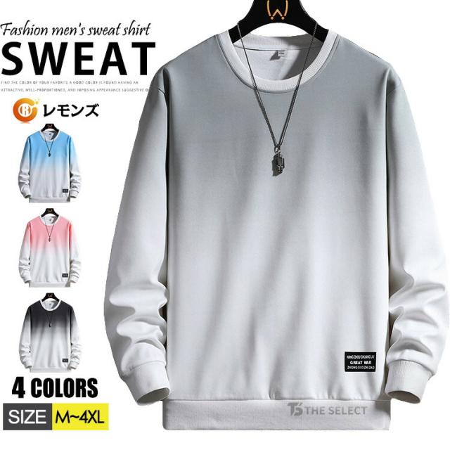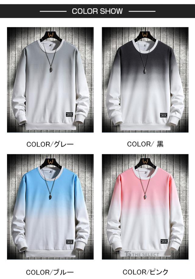 グラデーション トレーナー メンズ おしゃれ 長袖 スウェット 薄手 トレーナーtシャツ プルオーバー ストリート