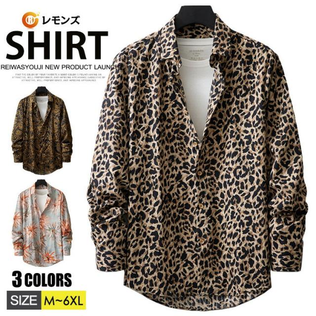 花柄 豹柄 ボタンシャツ かっこいい 長袖シャツ 春服 柄シャツ 30代 40代 50代