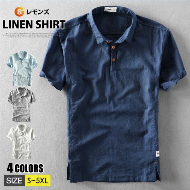 半袖シャツ メンズ 半袖 シャツ メンズ リネンシャツ プルオーバー カプリシャツ カジュアルシャツ 麻シャツ 綿麻シャツ 無地 コットンリネン 半袖シャツ 襟付きシャツ 夏服 トップス 春夏 夏物 涼しい メンズファッション