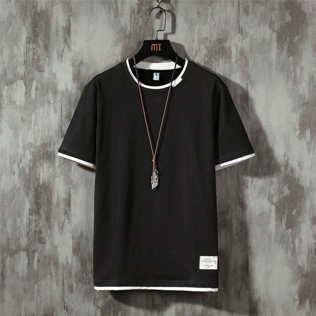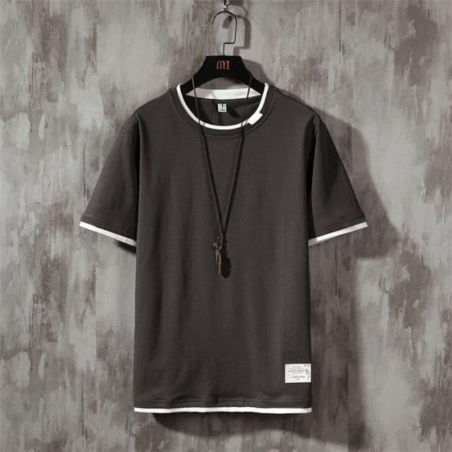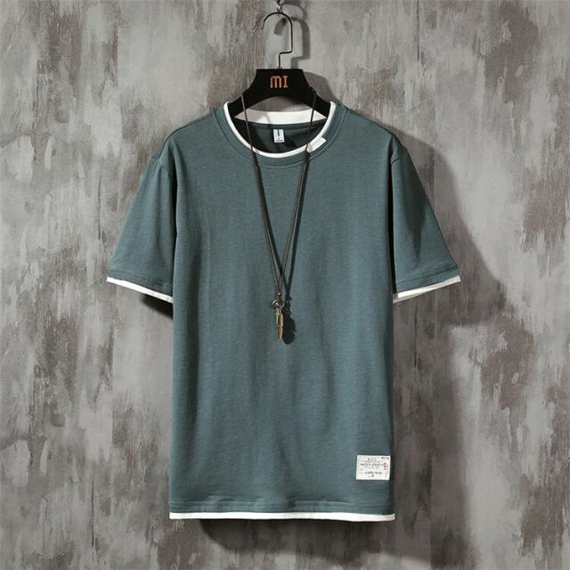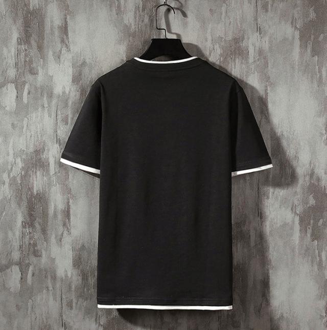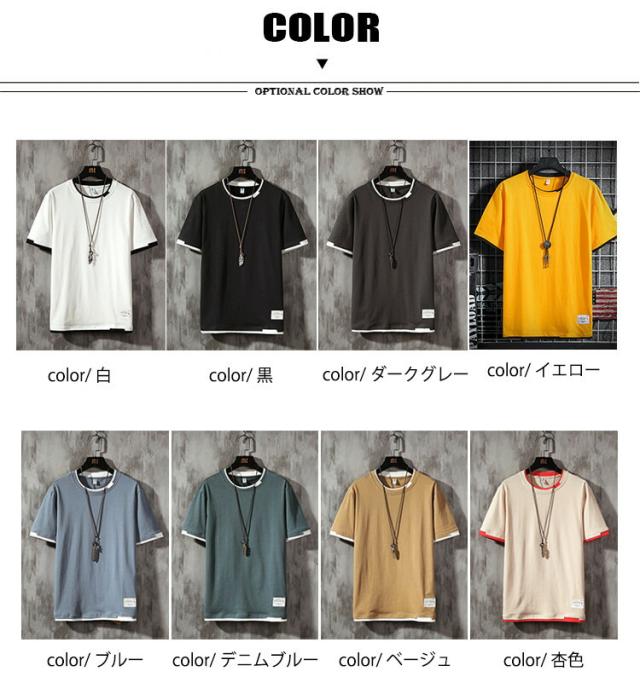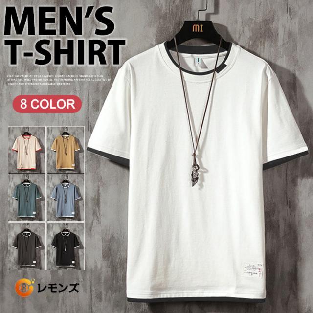 Tシャツ メンズ スリム tシャツ 半袖Tシャツ トップス ティーシャツ クルーネック 夏服 フェイクレイヤード サマー メンズファッション 夏