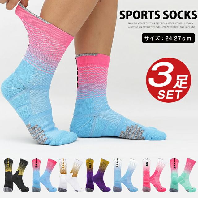 スポーツソックス メンズ バスケットボール ソックス 靴下 3足セット 厚手 衝撃吸収 運動 クルーソックス アウトドア トレッキング