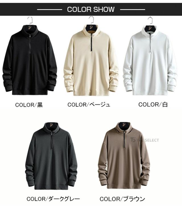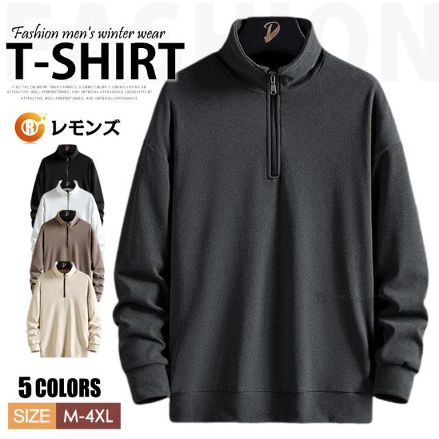 ハーフジップ トレーナー メンズ スウェット ゴルフウェア 両面起毛 ハイネック トップス 起毛 カットソー シンプル オシャレ ロンT 無地 春 秋冬 半ジッパー インナーシャツ カジュアル メンズファッション 防寒 暖かい 釣り ウェア