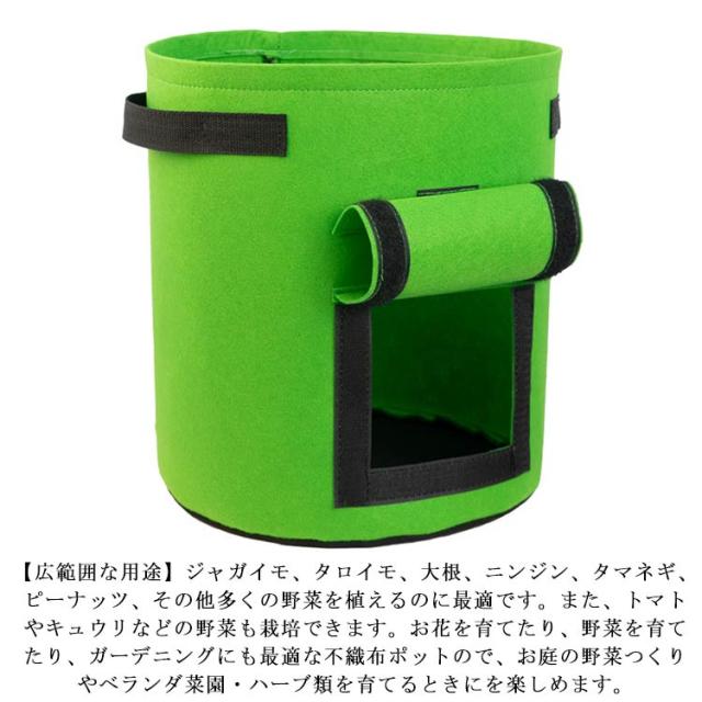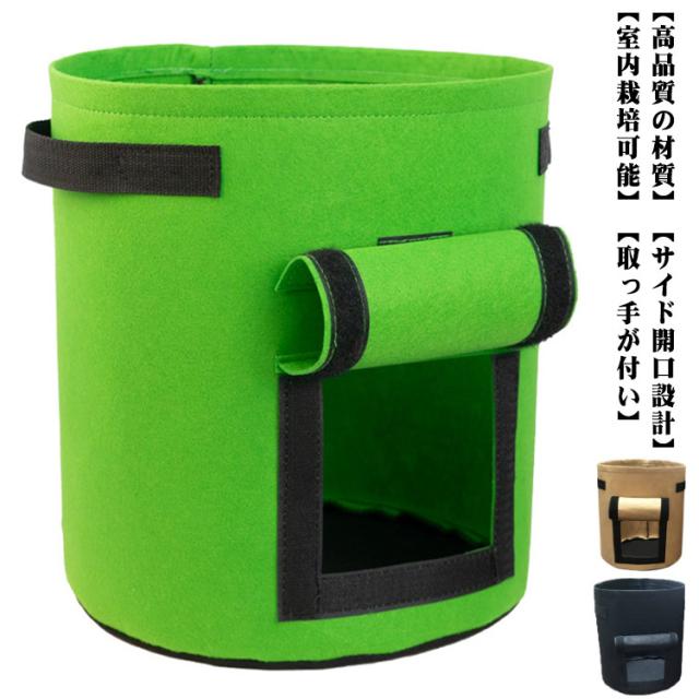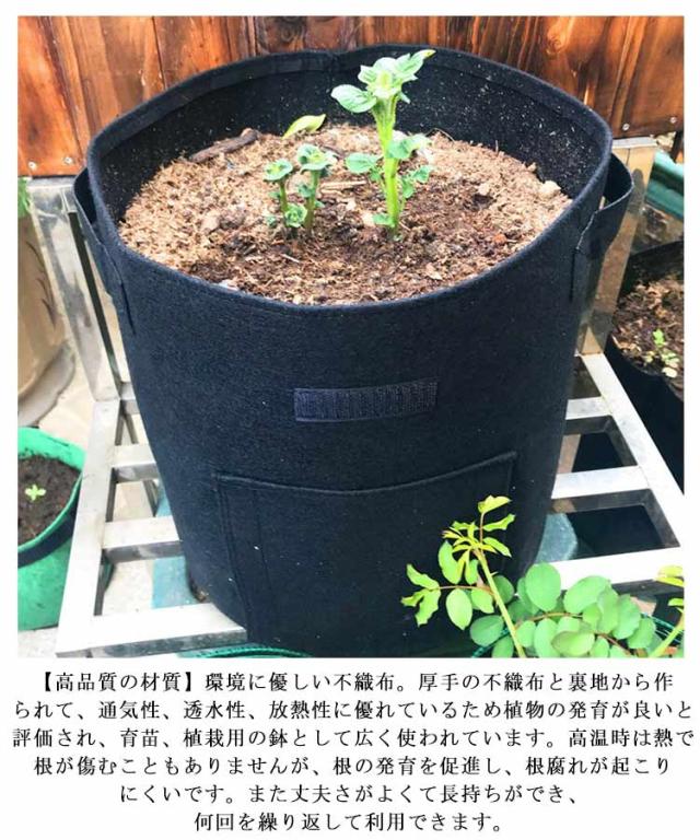 | 【高品質の材質】環境に優しい不織布。厚手の不織布と裏地から作られて、通気性、透水性、放熱性に優れているため植物の発育が良いと評価され、育苗、植栽用の鉢として広く使われています。高温時は熱で根が傷むこともありませんが、根の発育を促進し、根腐れが起こりにくいです。また丈夫さがよくて長持ちができ、何回を繰り返して利用できます。 【サイド開口設計】可視ウィンドウから簡単に収穫できます。これを使用して、野菜が熟しているかどうかを判断し、粘土土を掘ったり、苗を傷つけたりすることなく、直接収穫できます。 【室内栽培可能】軽量で持ち手が付いてるので移動が楽です。室内栽培可能,透水性と保水性がありますので底面に石を敷く必要なし。不織布が土の流出を防ぎ鉢底石いらずのポットなので、ベランダでの利用にも便利です。 【取っ手が付い】フェルトプランターは丈夫な取っ手が付いてあり、移動するときとても便利です。 【広範囲な用途】ジャガイモ、タロイモ、大根、ニンジン、タマネギ、ピーナッツ、その他多くの野菜を植えるのに最適です。また、トマトやキュウリなどの野菜も栽培できます。お花を育てたり、野菜を育てたり、ガーデニングにも最適な不織布ポットので、お庭の野菜つくりやベランダ菜園・ハーブ類を育てるときにを楽しめます。 | |